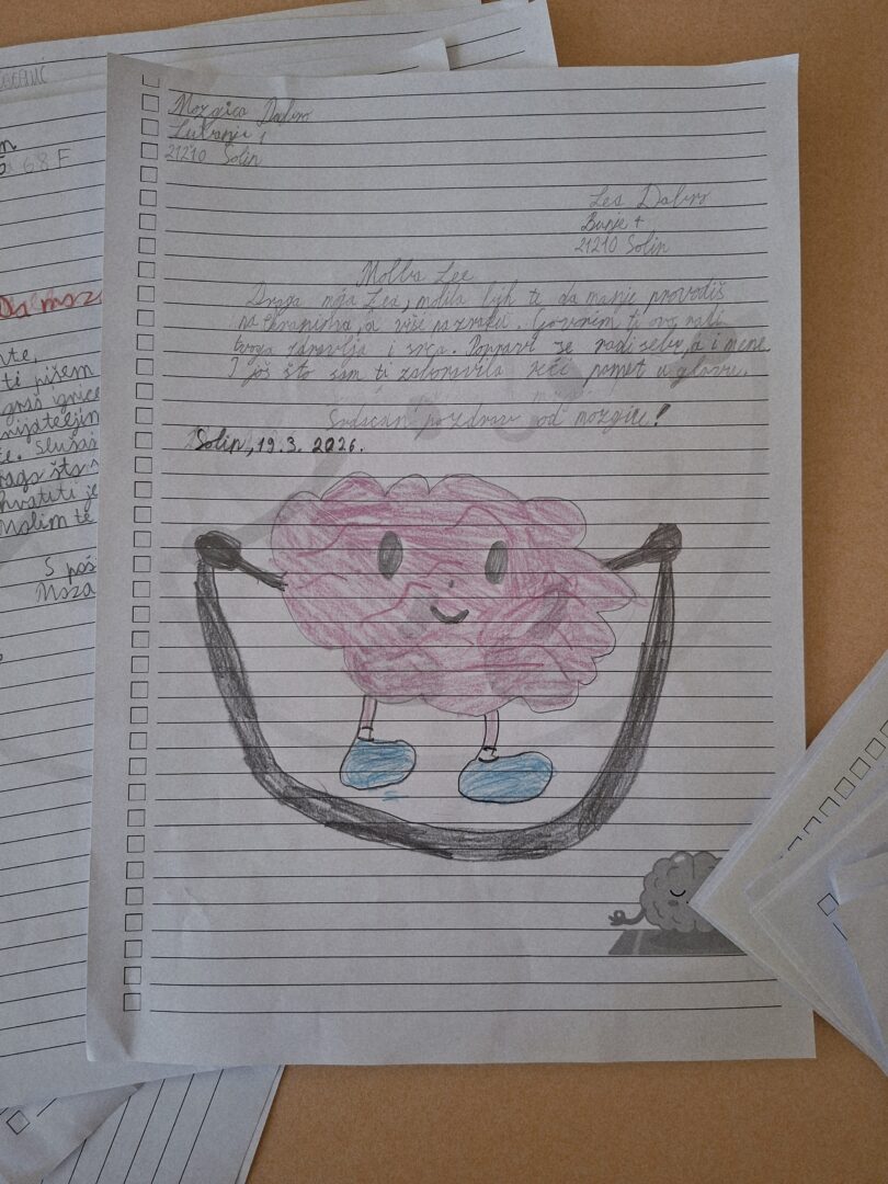 U sklopu obilježavanja Tjedna mozga imali su i poseban sat kreativnog pisanja na kojem su pisali pismo kao da im se sam mozak obraća – što želi od njih, kako ga mogu čuvati, razvijati i pomoći mu da što bolje radi. Ta su pisma postala podsjetnik na važnost koju trebaju pridavati svome mozgu, ali i osobnom rastu i razvoju.