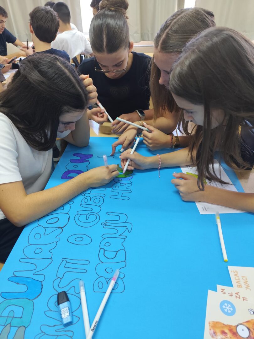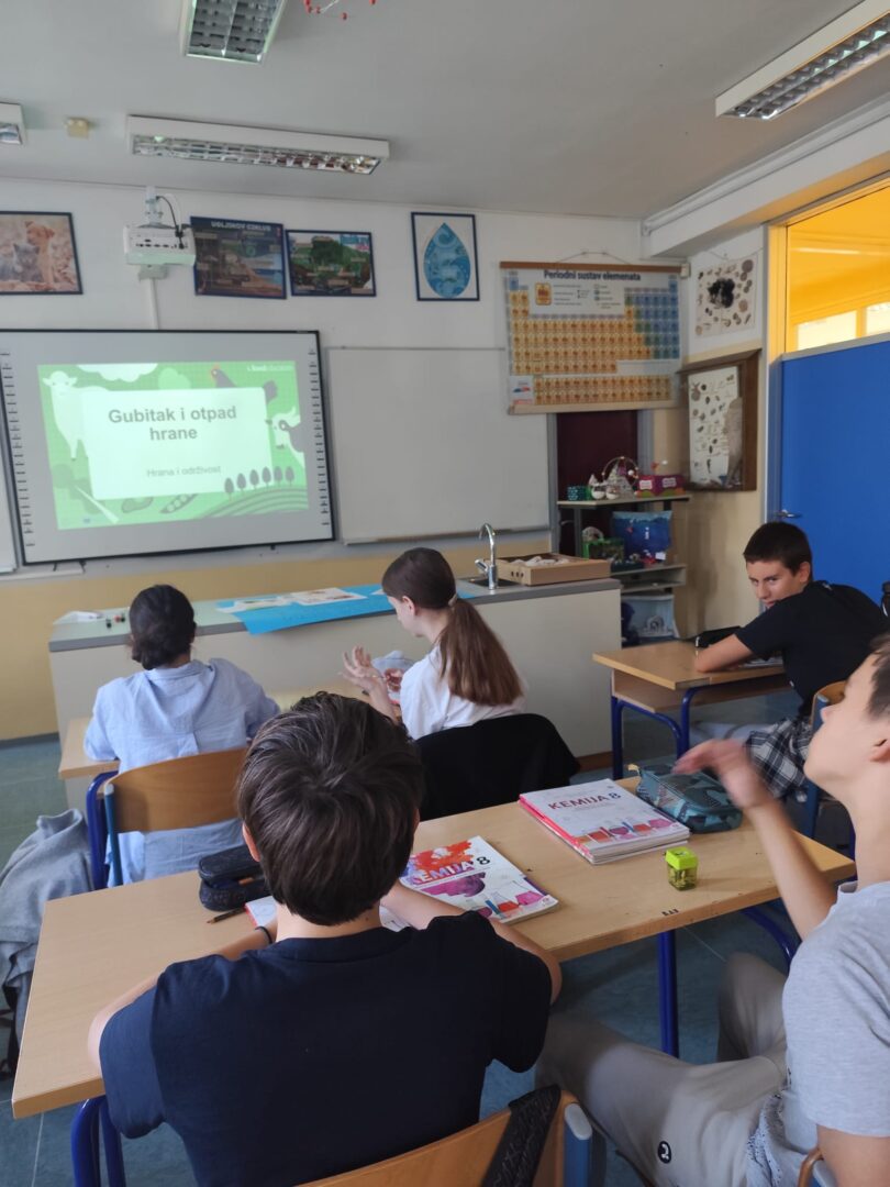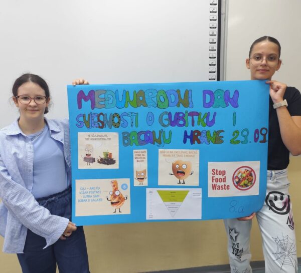 Učenici 8. a razreda obilježili su Međunarodni dan svjesnosti o gubitku i otpadu hrane sudjelovanjem u projektu FoodEducators. Kroz zanimljive aktivnosti učenici su: pogledali edukativni video o količini bacanja hrane, sudjelovali u kvizu znanja, izradili edukativni plakat, osmislili recepte za pripremu novih jela od ostataka hrane.
