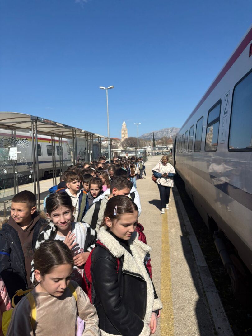Uslijedila je šetnja do zgrade Lučke kapetanije. Na putu su zastali kako bi uočili smještaj i povezanost brodske luke s autobusnim i željezničkim kolodvorom. Nakon kratkog odmora putovanje su nastavili vlakom. Prije ulaska u vlak, u zgradi HŽ-a promotrili su vozni red, vidjeli gdje se kupuju karte te se uputili prema svom vlaku. Nekima je to bilo prvo putovanje vlakom pa je uzbuđenje bilo itekako vidljivo.