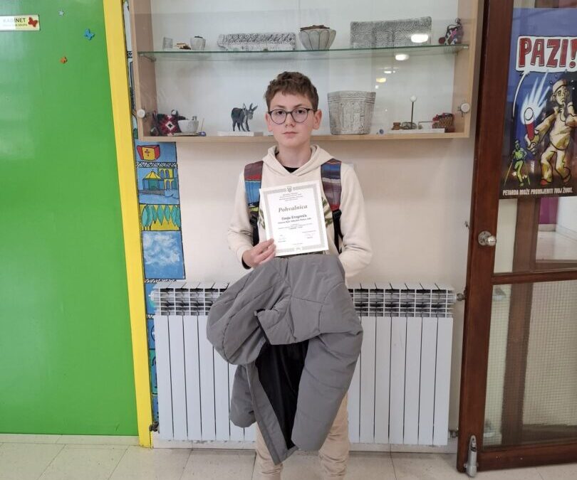 Pohvalu upućujemo i njegovoj mentorici Nini Žurić Grubišić na predanom radu, podršci i uloženom trudu u pripremi učenika za natjecanje.